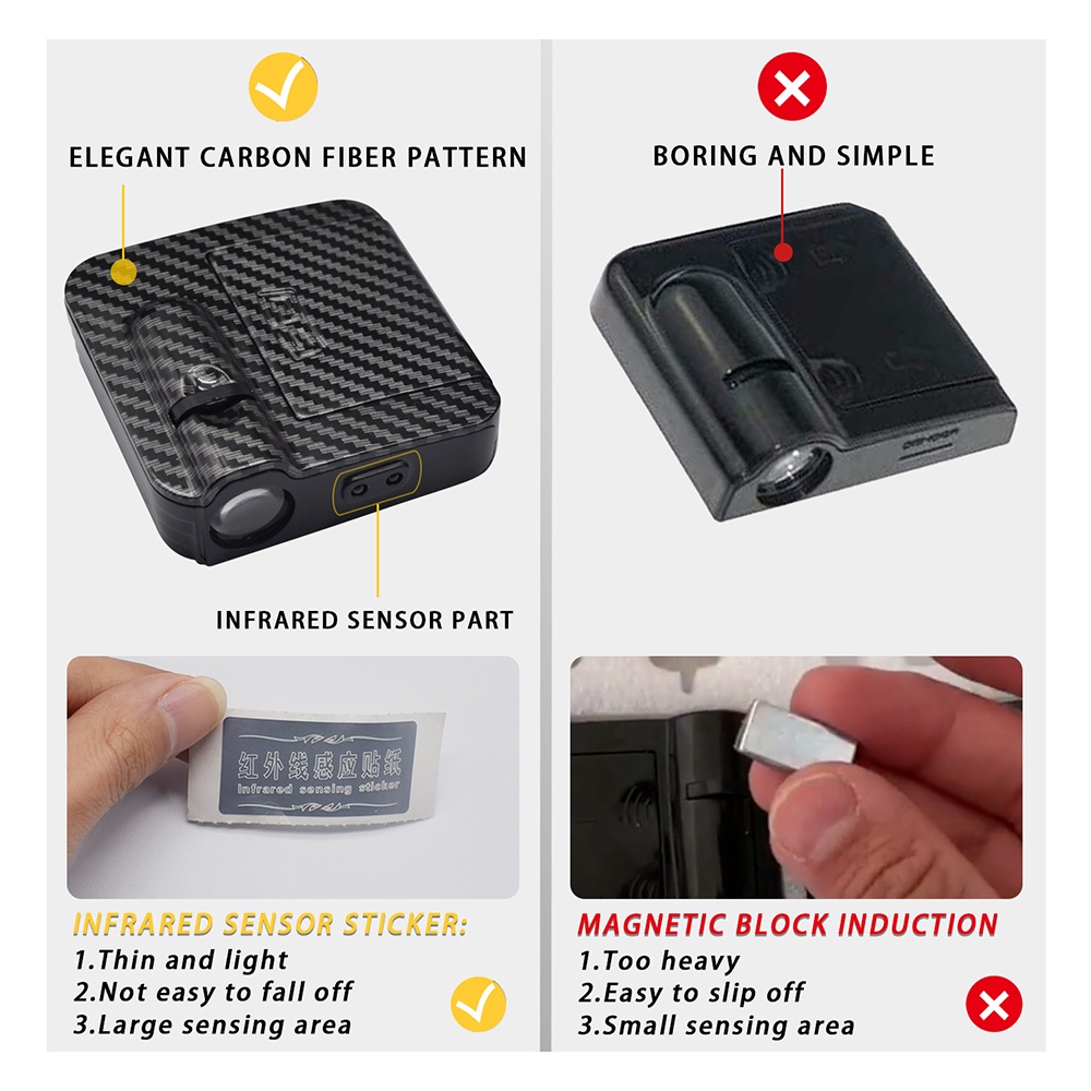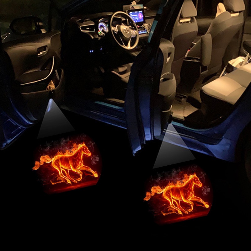 2pcs Car Door Light Wireless Carbon Fiber Welcome Lamps Car LED Light Cartoon HD 3D LOGO For Ford Fiesta Focus Mondeo Ranger Raptor Wildtrak XLT XL Everest