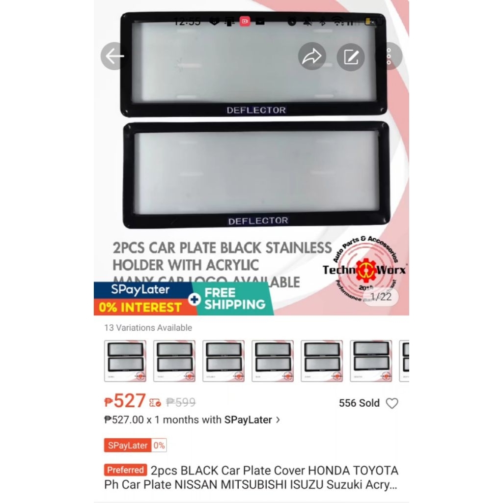 2pcs Car Plate Cover BLACK DEFLECTOR Toyota Old and new car plate PH Car Accessories Logo HONDA