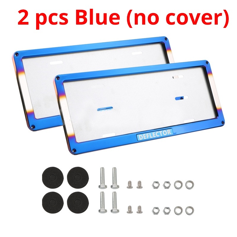 2pcs Car Plate Number Plating Cover Blue Stainless Steel Car Plate Frame Acrylic Cover Car License Plate Frame