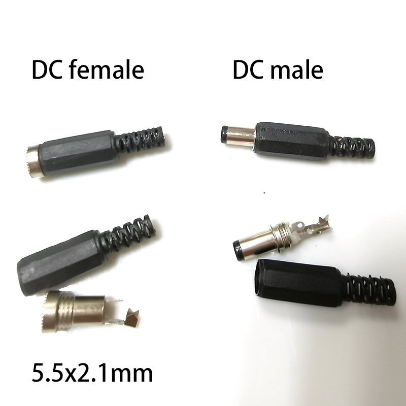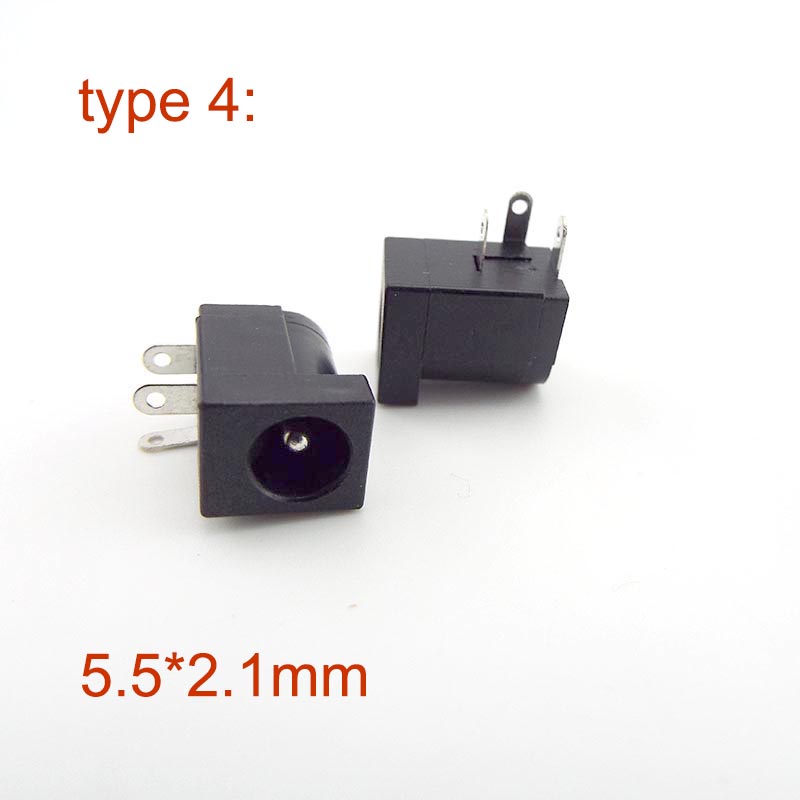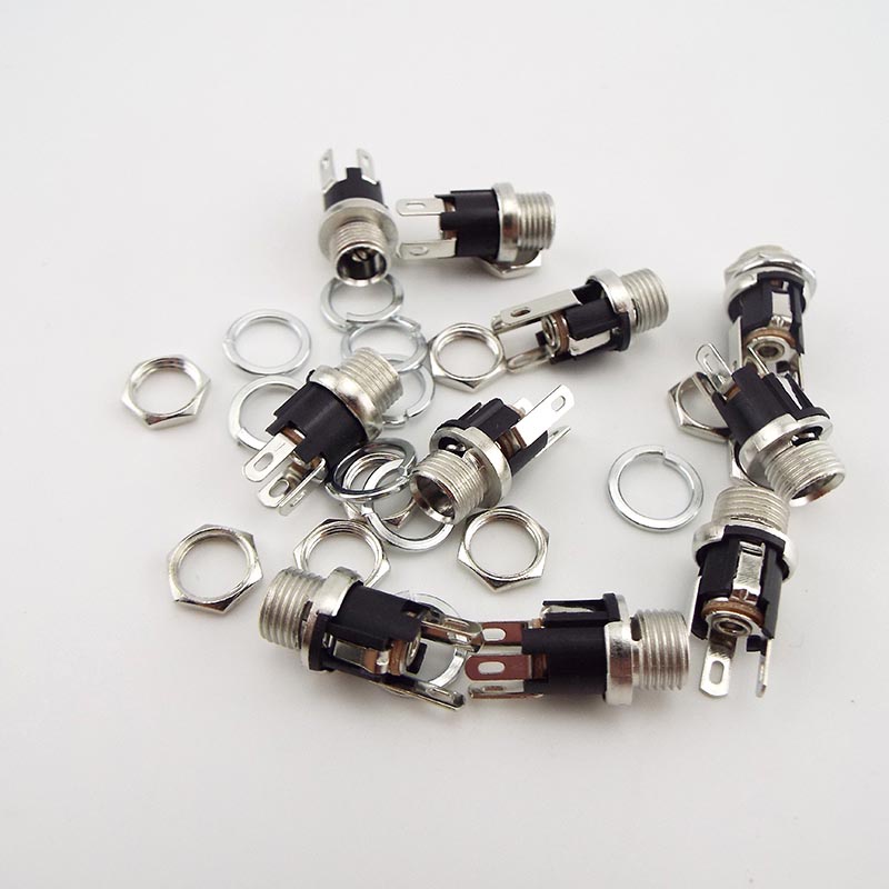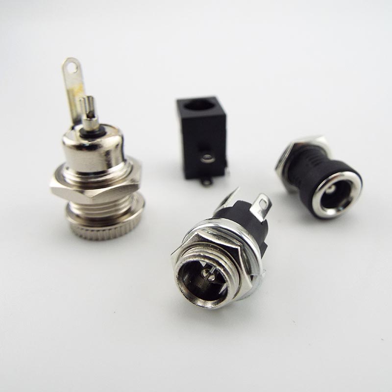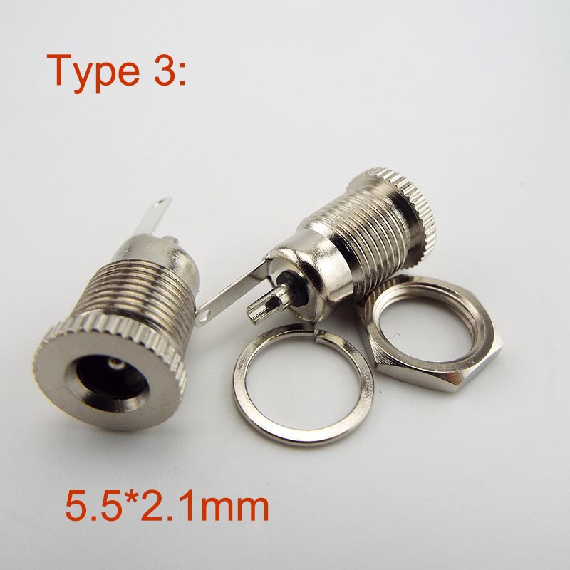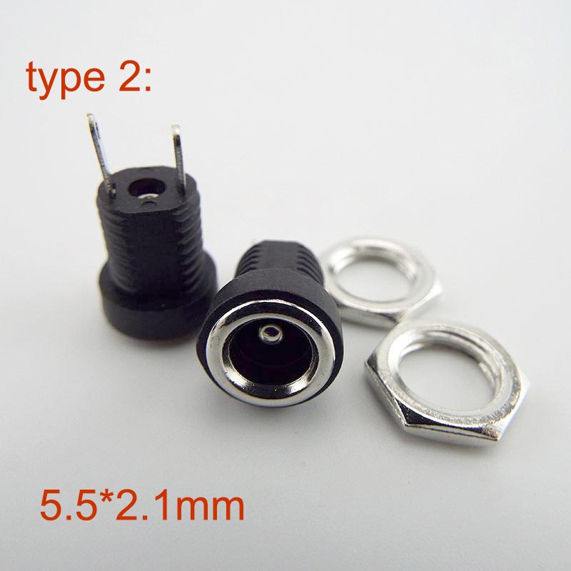 2pcs DC Power Supply Jack 5.5*2.1mm Socket Electric Female PCB Panel Mount Connector Threaded Metal Charging Port Plug