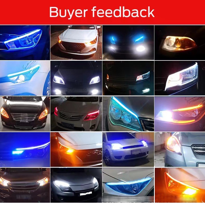2pcs Flexible Car Led Light Strip Dual Color Headlight Lamp Daytime Light Signal Guide Lamp
