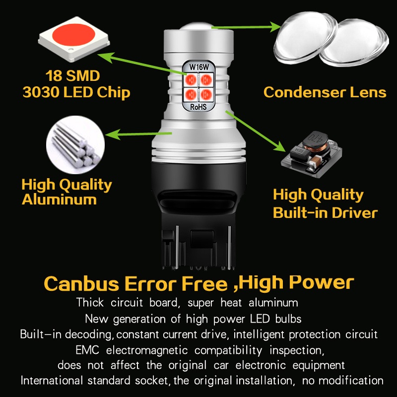 2pcs LED Brake Light Blub Lamp W21/5W 7443 T20 Canbus For Subaru Legacy 2005-2014 Forester 2003-2016 Impreza Outback XV BRZ