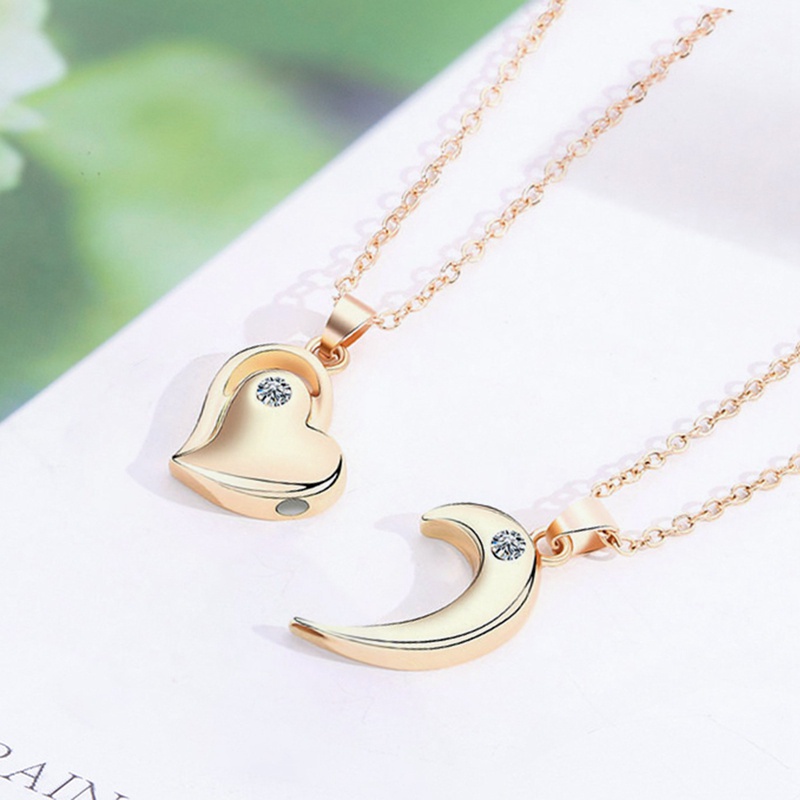 2pcs Magnetic Distance Couple Necklaced Lovers Matching Pendent Necklace Long Distance Gifts Heart Wedding Gift Jewelry Set