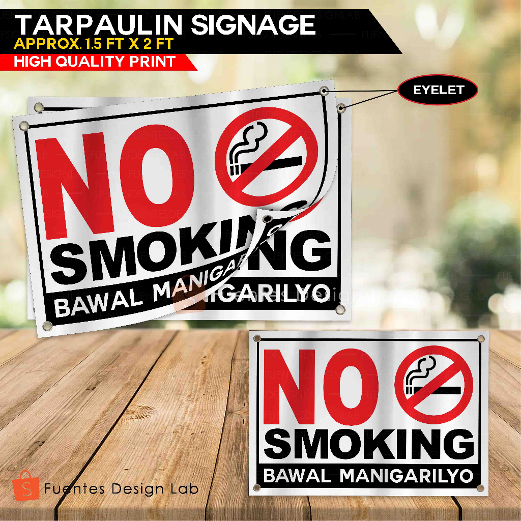 2pcs NO SMOKING Signage | BAWAL MANIGARILYO Tarpaulin Signage | Signage 1.5ft x 2ft