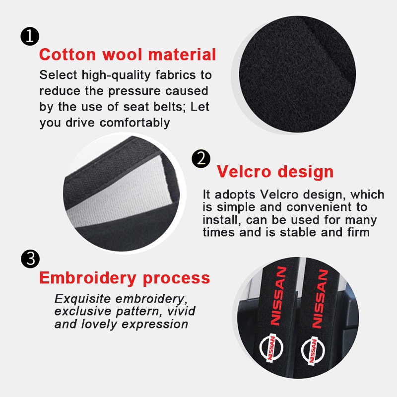 2pcs Nissan Car Seat Belt Pads Shoulder Sheath Car Seat Belt Cover black Cotton Car Shoulder Pad