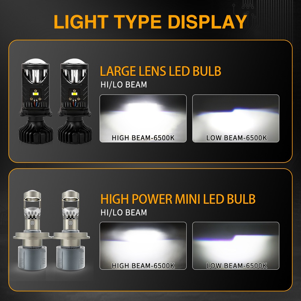2pcs Plug And Play 6000K Car Mini Lens H4 LED Headlight Projector Headlamp LED Bulb Y6