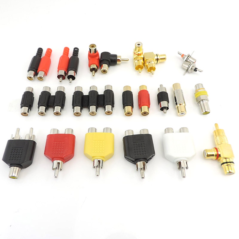 2pcs RCA Male female to 2rca 3rca male Female RCA Connector Splitter Adapter AV Video Audio T Plug RCA 2 3 way right angel a1