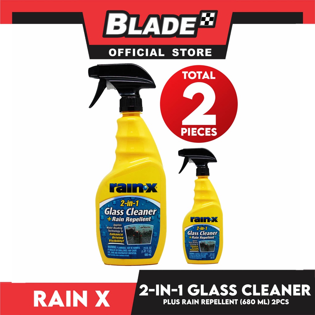 2pcs Rain-X 2 In 1 Glass Cleaner With Rain Repellent Trigger 680ml Enhance Driving Visibility