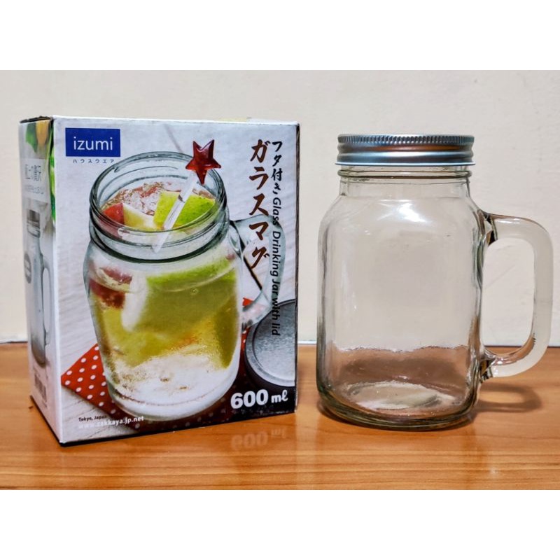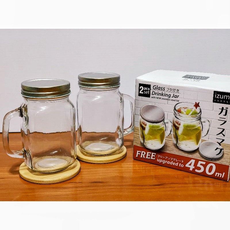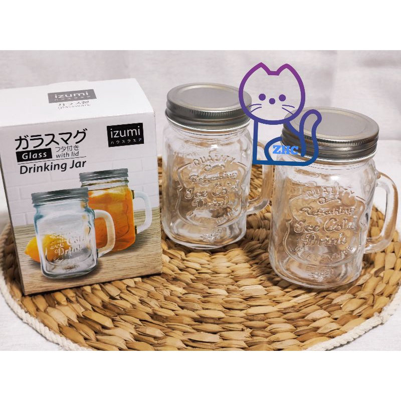 2pcs/Set Mason Jar Glass Mug Large with Handle and Lid Clear, Mason Mug Izumi Japan Product
