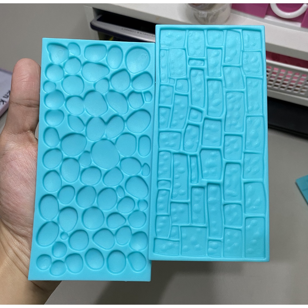2pcs Silicon Molder/ Embosser Brick Stone Wood Swirl