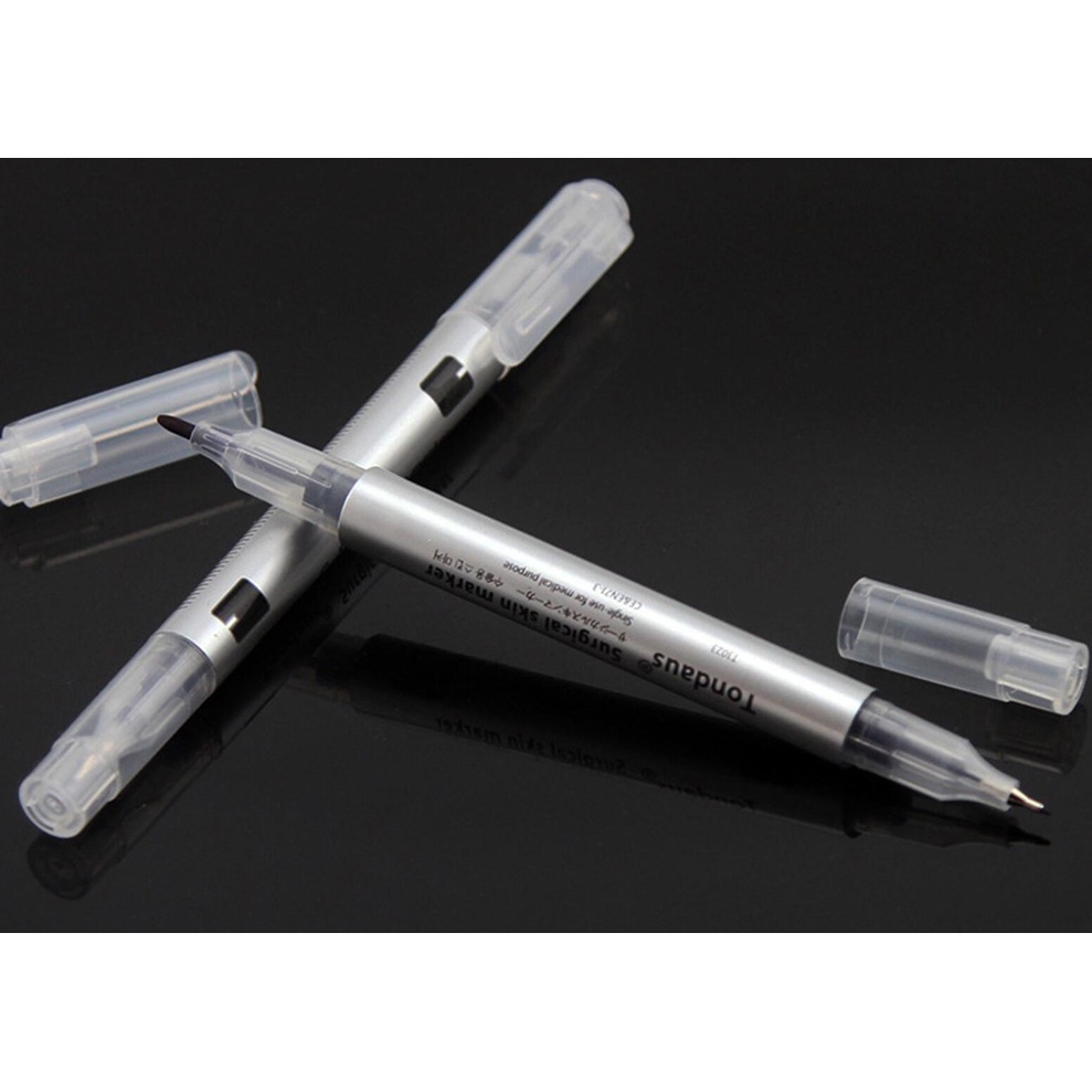2pcs Tattoo Skin Marker Piercing Marker Pen Double Headed Surgical Markers Skin With Ruler For Eyebrow