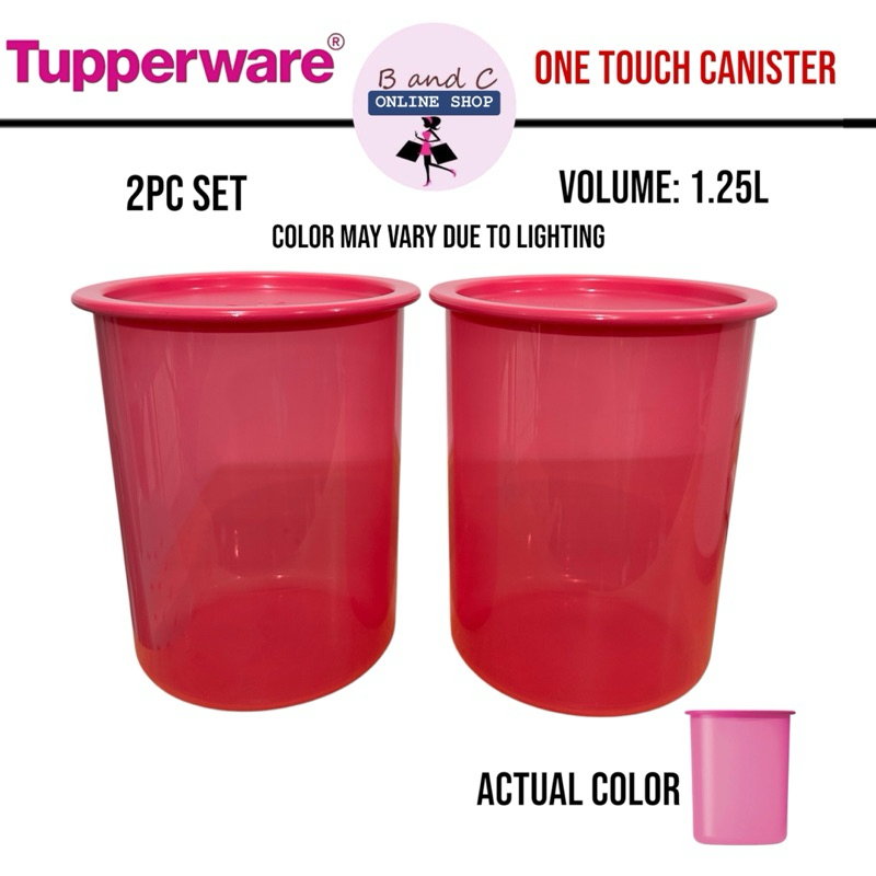 2pcs Tupperware one touch canister 1.2L pink punch
