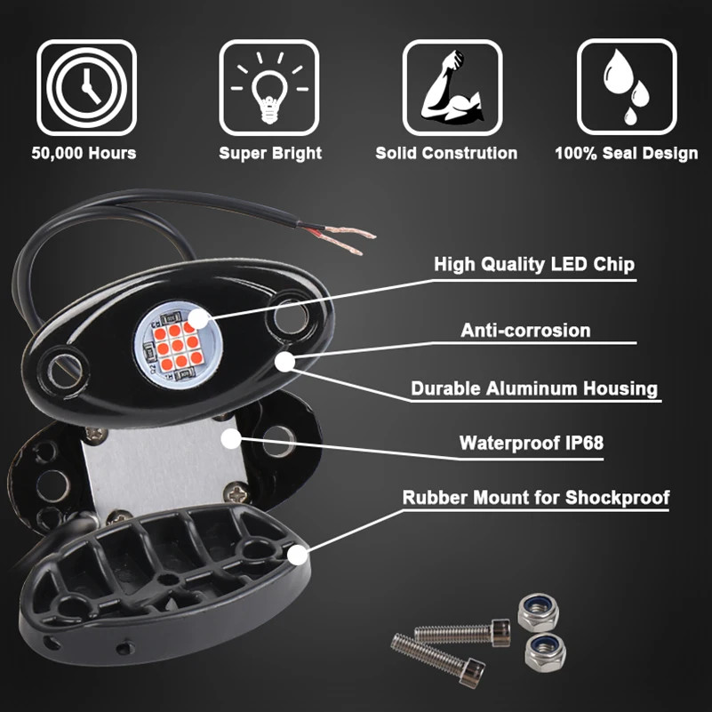 2pcs Universal Car chassis lights aluminum alloy off-road grille lights LED drip glue multi-color chassis modification lights for Jeep Wrangler Off-Road Under Wheel Light