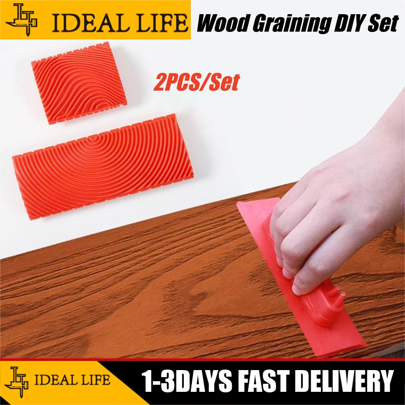 COD 2pcs Red Rubber Wood Grain Paint Roller DIY Graining Painting Tool Wood Grain Pattern Wall