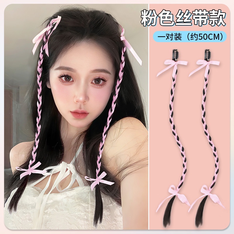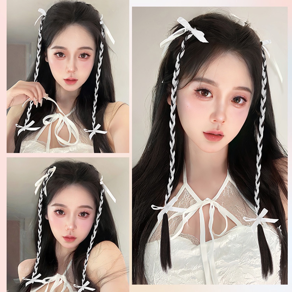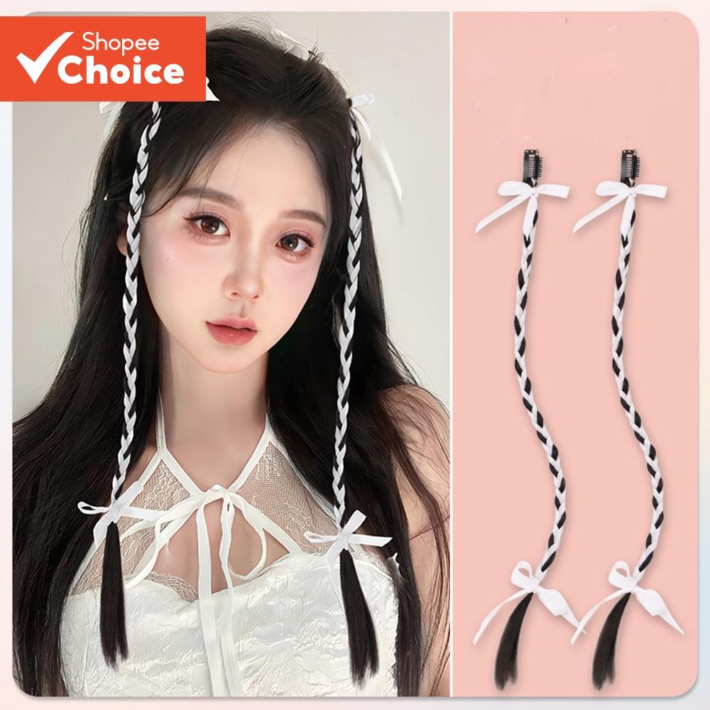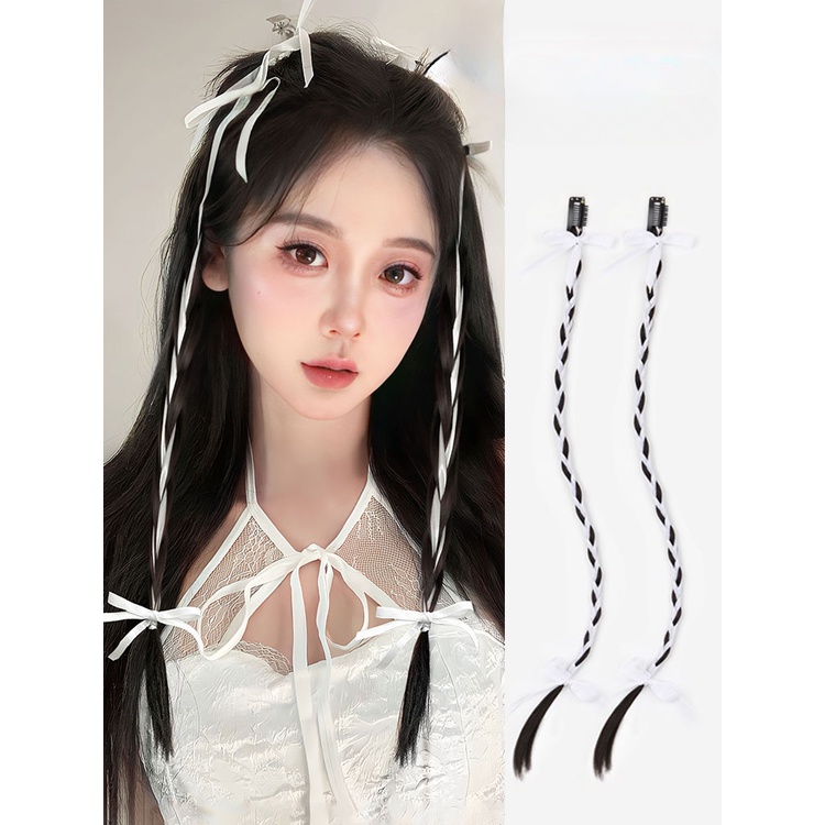 2pcs Y2K Sweet Cool Ballet Style Braided Ponytail Wig Extension Twisted Braid Butterfly Knot Ponytail Accessories