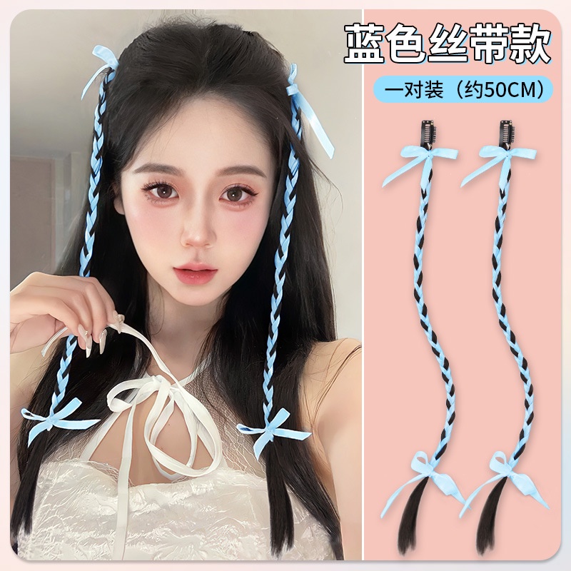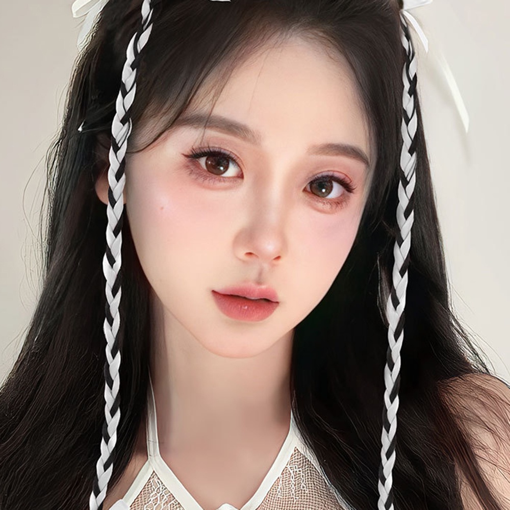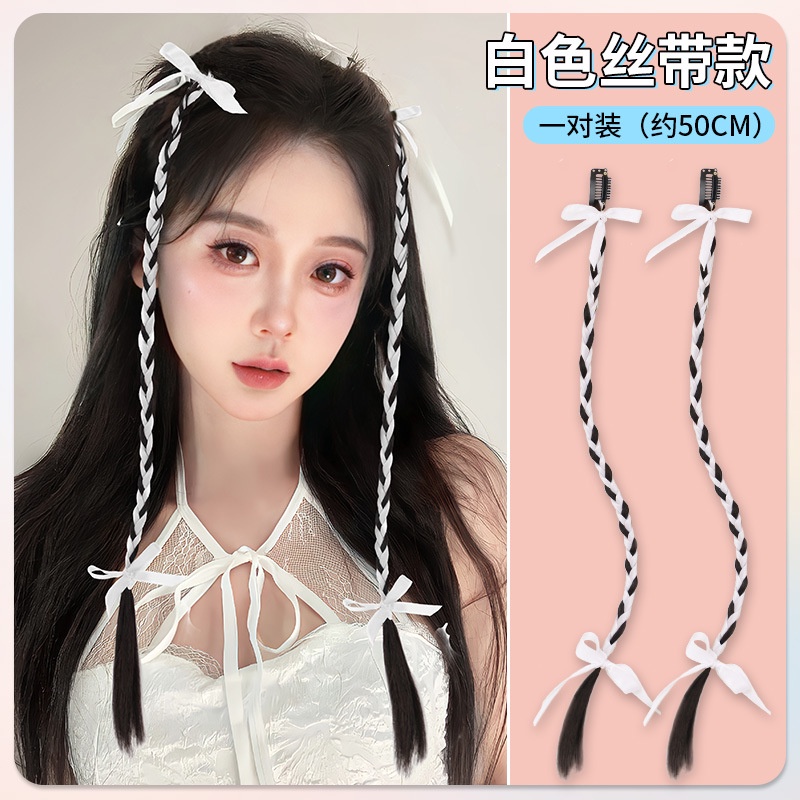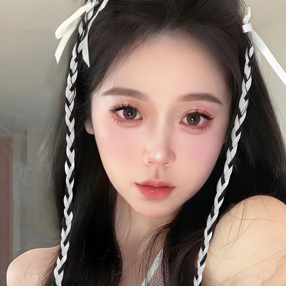 2pcs Y2K Sweet Cool Ballet Style Braided Ponytail Wig Extension Twisted Braid Butterfly Knot Ponytail Accessories