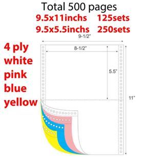 2ply, 3ply, 4ply Carbonless Continuous Computer Form 9.5X11inches | 9.5 x 5.5 inches Colored