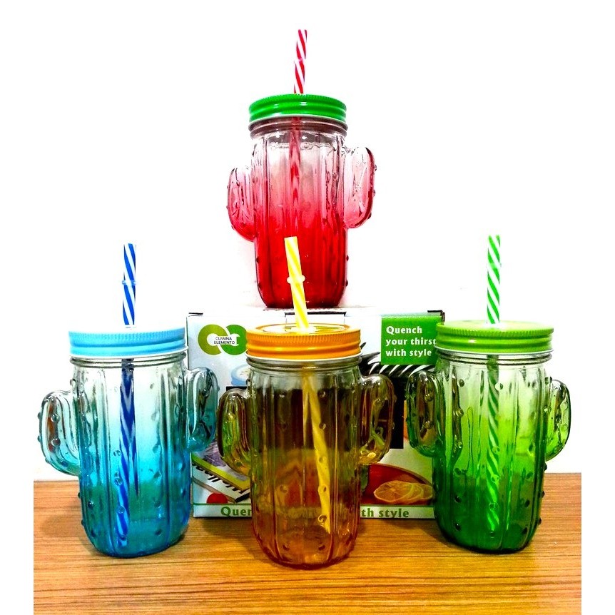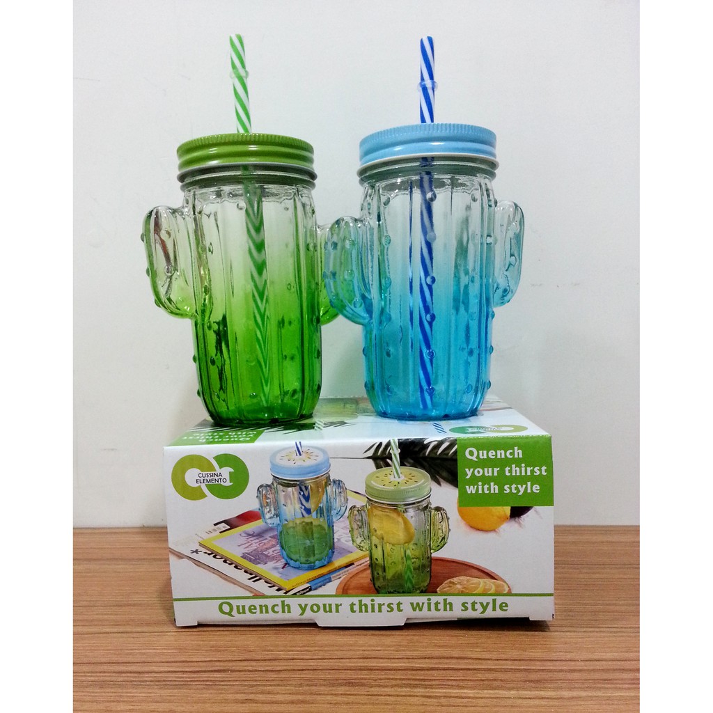 2sets 400ml Cactus Jar with Straw/Beverage Jar
