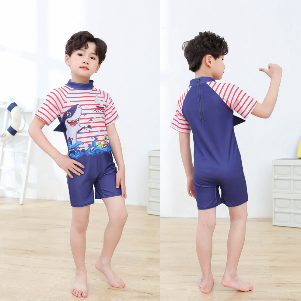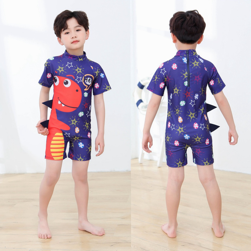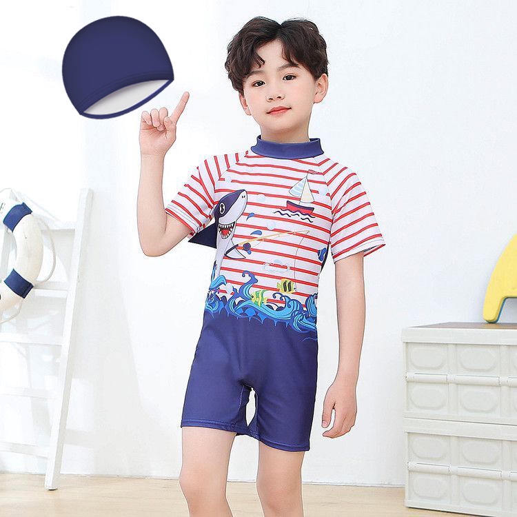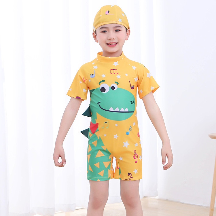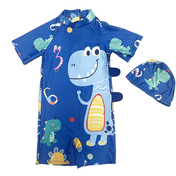 3-11Yrs Children Swimsuit for Kids Boys Cartoon Dinosaur Swimming Suit Kid Shark Swimwear with Caps