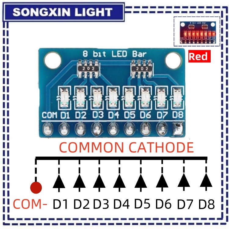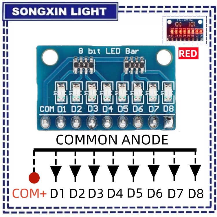 3.3V 5V 8 Bit Blue / Red Common Anode / Cathode LED Indicator Module Diy Kit For Arduino NANO UNO Raspberry pi 4 Nodemcu V3