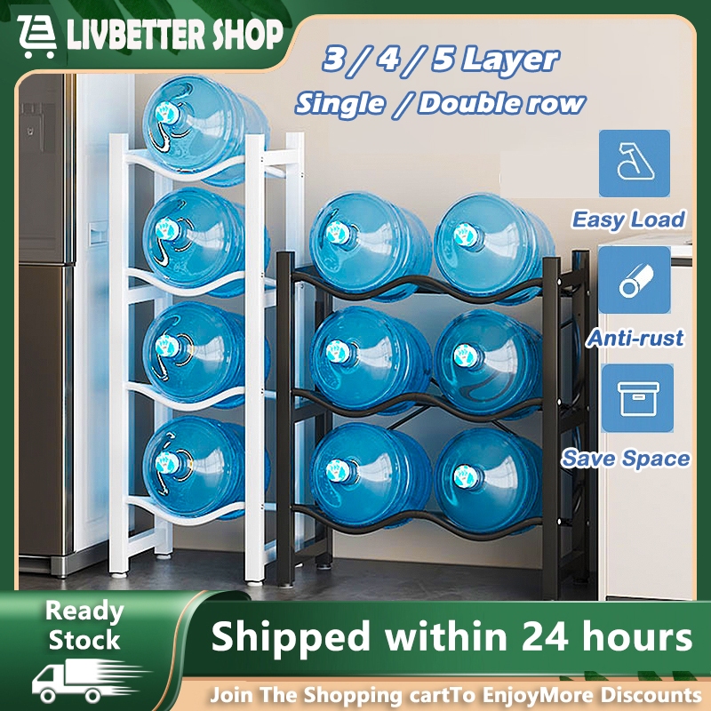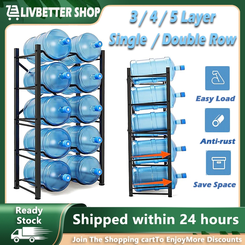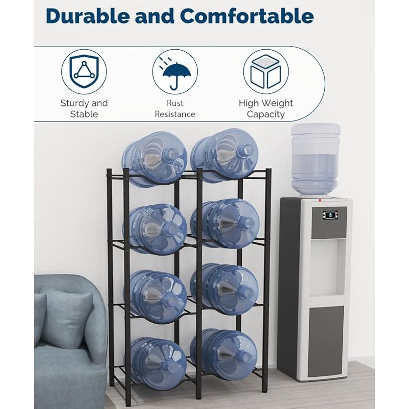 3/4/5 Layer Mineral Water Dispenser Rack Stand Water Container Gallon Rack Mineral Jug Organizer Rack Stand Bucket Storage Rack Double Row Detachable Heavy Duty Water Jug Stand for Office, Kitchen, Garages, Restaurant, and Gym