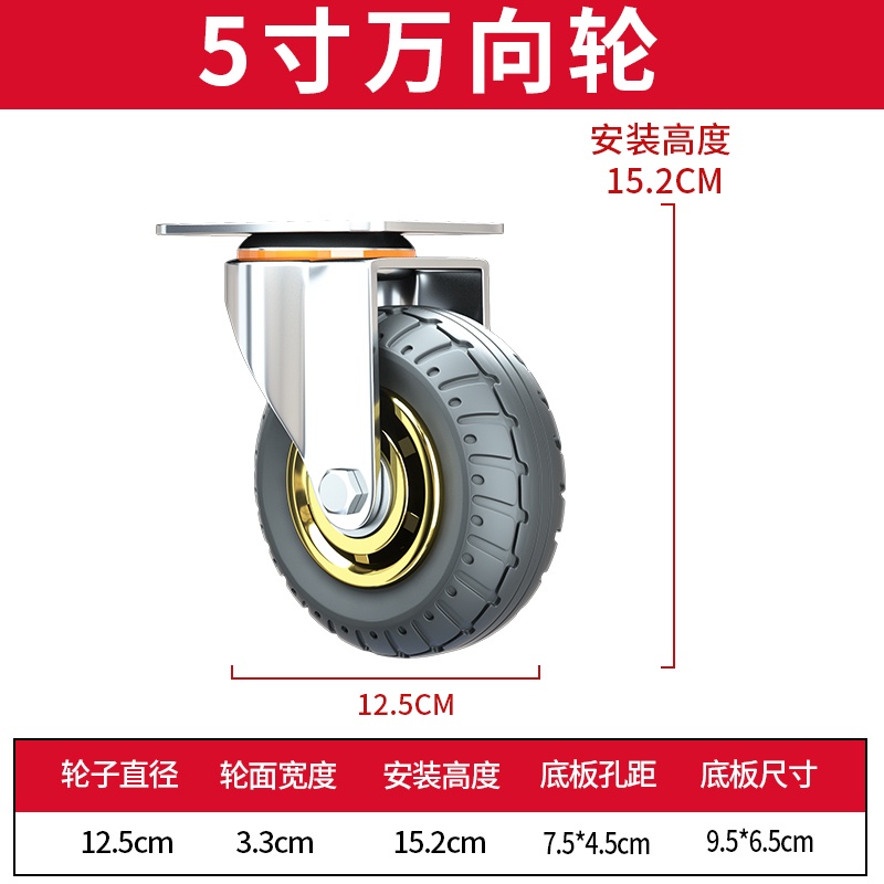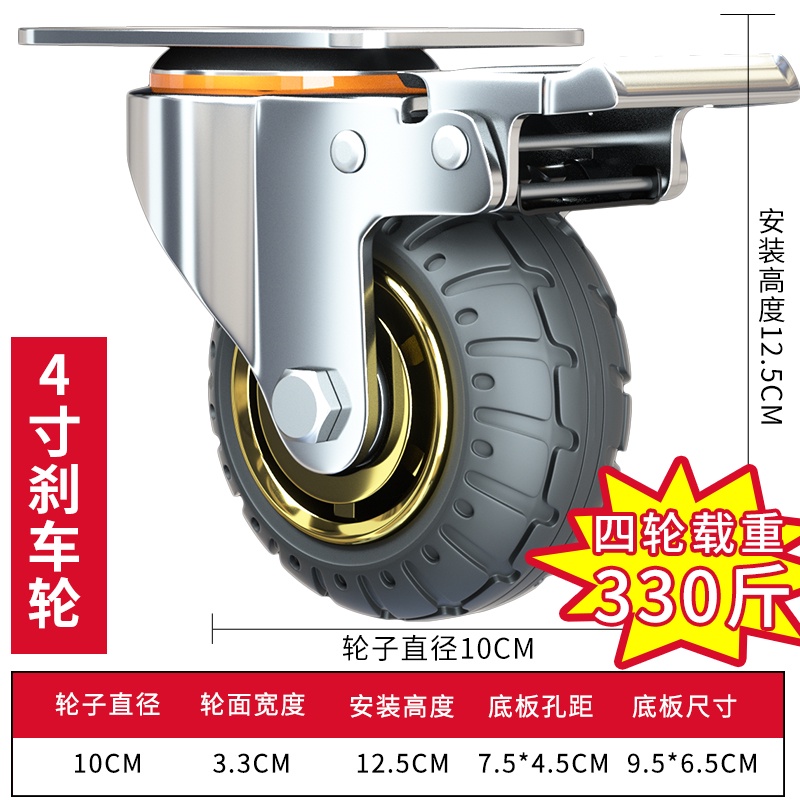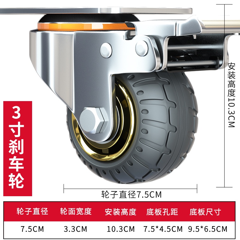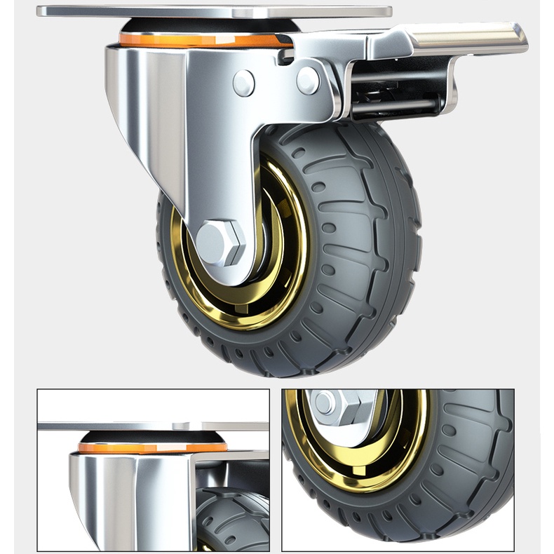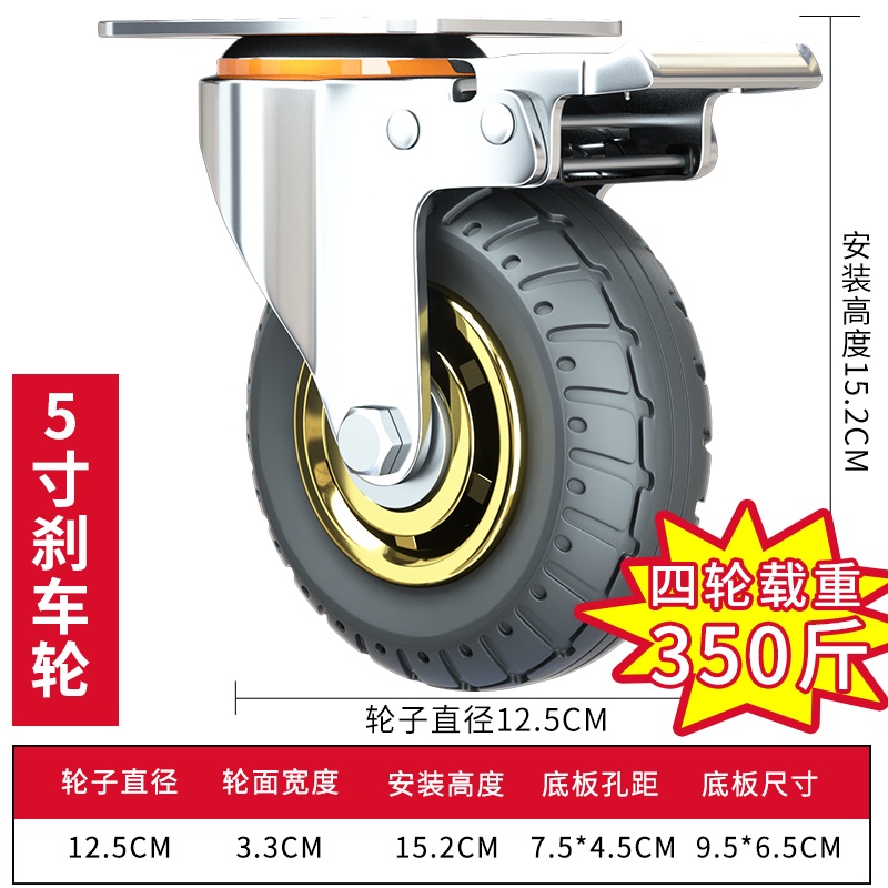 3/4/5 inch Universal Soft Rubber Furniture Casters One-Way Quiet Heavy Duty Caster Brake Wheel For Desk Carts
