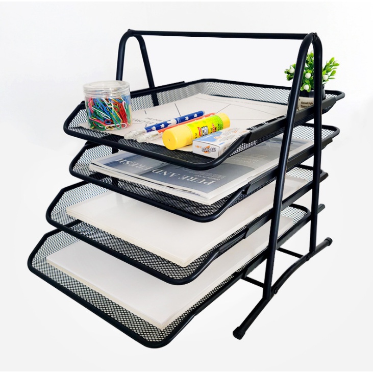 3-4 Layer Office A4 Paper Organizer Document File Letter Book Metal Wire Mesh Storage Holder