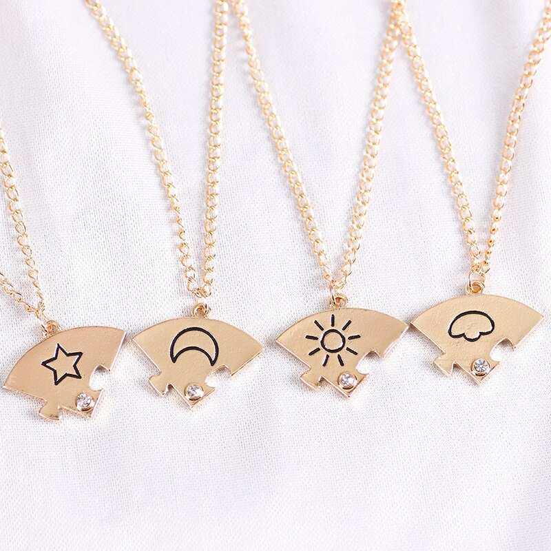 3/4 Pcs/Set Best Friend Stars Moon Sun Clouds Inlaid Rhinestone Stitching Alloy Heart Pendant Necklace Luxury Couple Necklace Lady Jewelry Choker Christmas Present