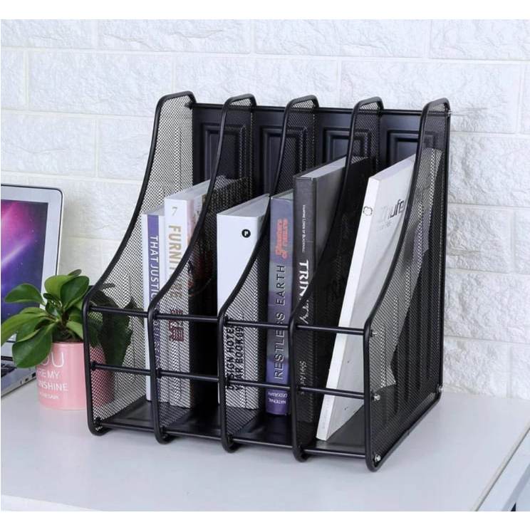 3/4 Slot Mesh Metal Document Files Holder Rack,Desk Files Organizer Book Stand