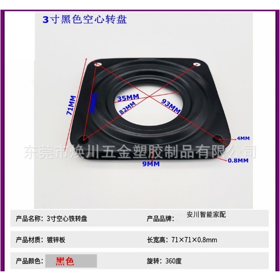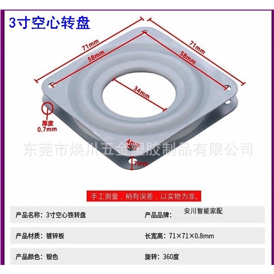 3/4 inches Square 360 Degree Rotating Bearing Base Lazy Susan Bearing Turntable Bearing Swivel Plate