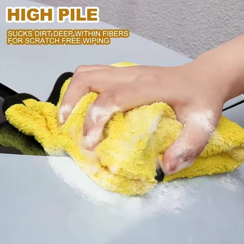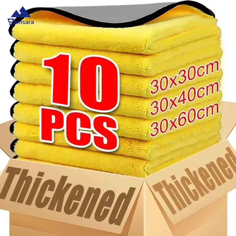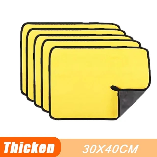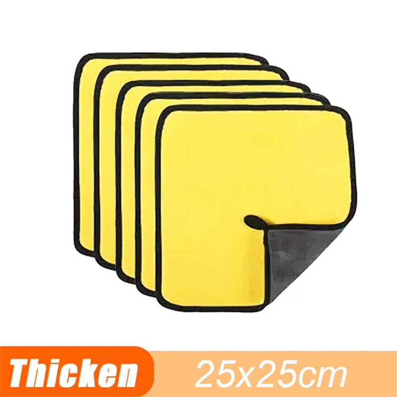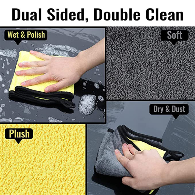 3/5/10 PCS Dual-Sided Microfiber Cleaning Cloth for Car/Windows/Dishes, 25x25cm-30x60cm Multi-Size, Reusable Lint-Free Towel with Yellow & Gray Design