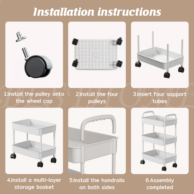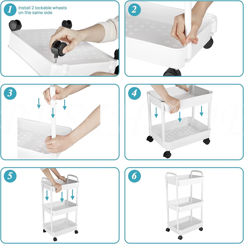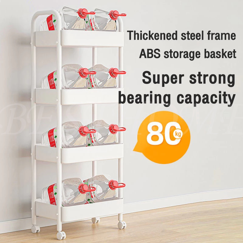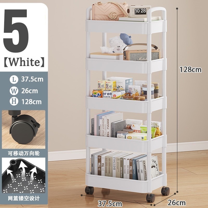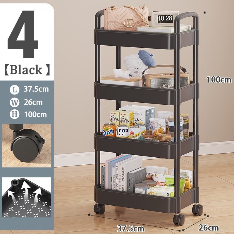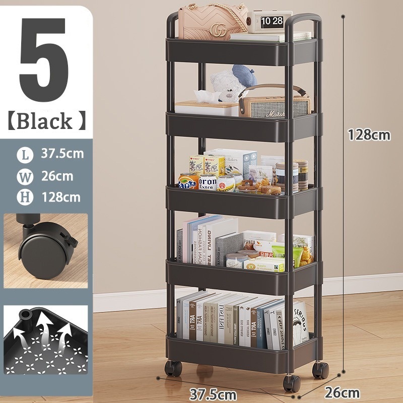 3-5 Tier Trolley Cart Moving Rack Kitchen Storage Shelf Bathroom Organizer Bath Storage Rack Handle