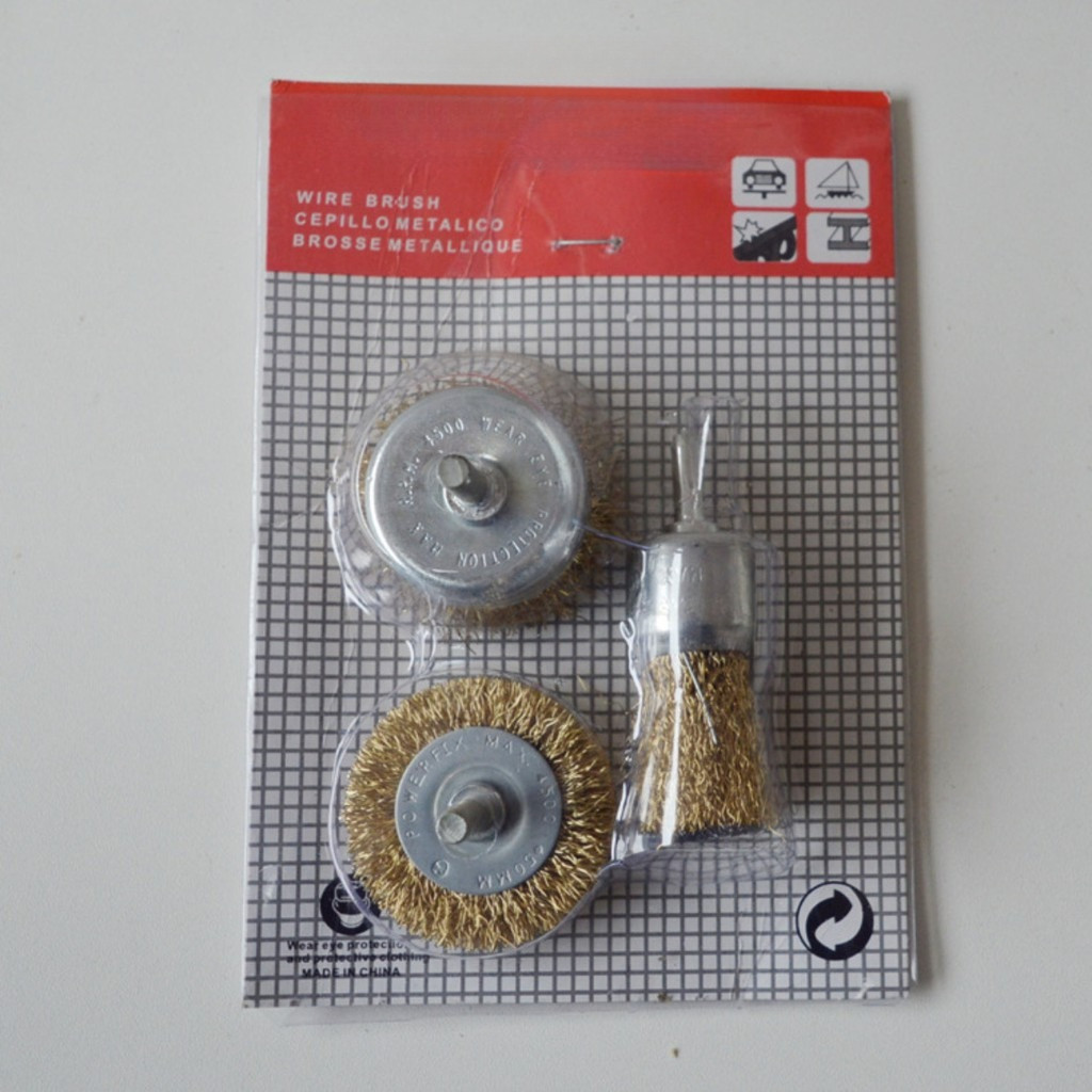 3/5pcs Steel Wire Polishing Wheel Grinder Cleaning Brush Tool Gold Tone