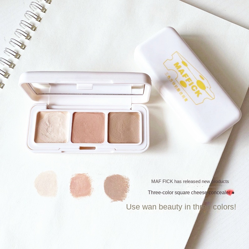 3-Color Square Cheese Concealer/Liquid Foundation/Concealer Cream/Long-lasting Waterproof Fixing Concealer Acne Marks, Dark Circles, Whitening, Tear Trough, Contouring Palette, Palette, Loose Powder Facial Cosmetics Gift