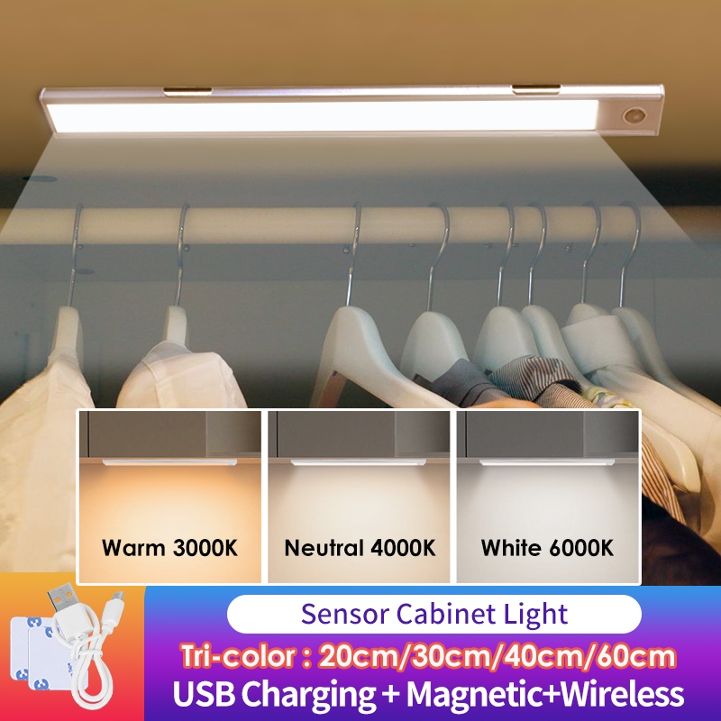 3 Colors Cabinet Light Sensor Kitchen Light Aluminium Smart Night Lights USB TYPE-C Rechargeable