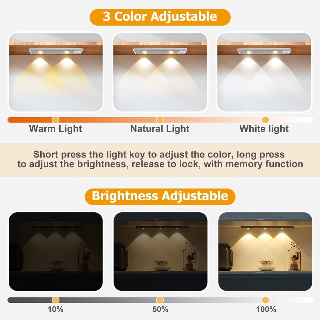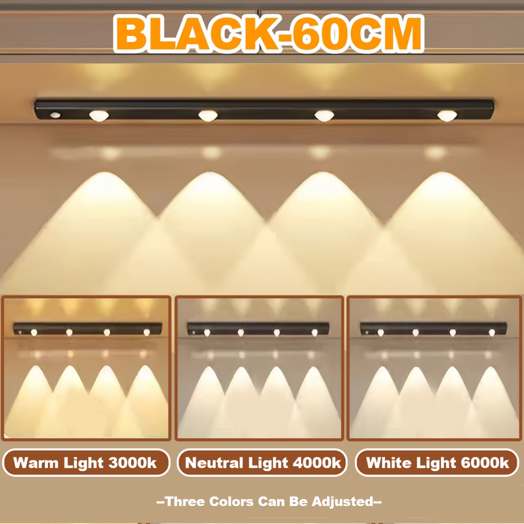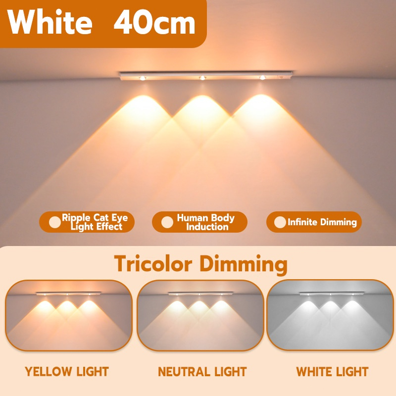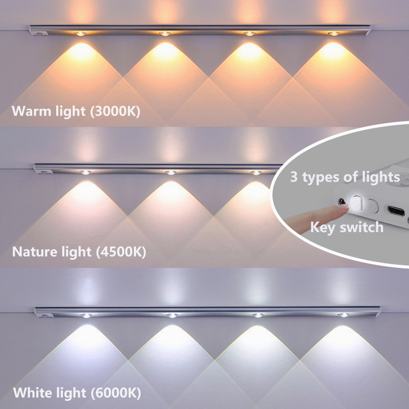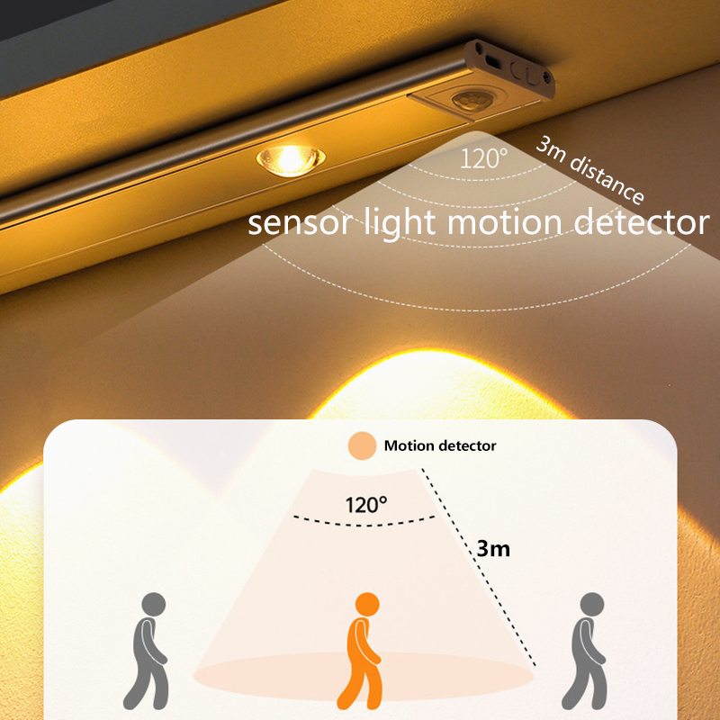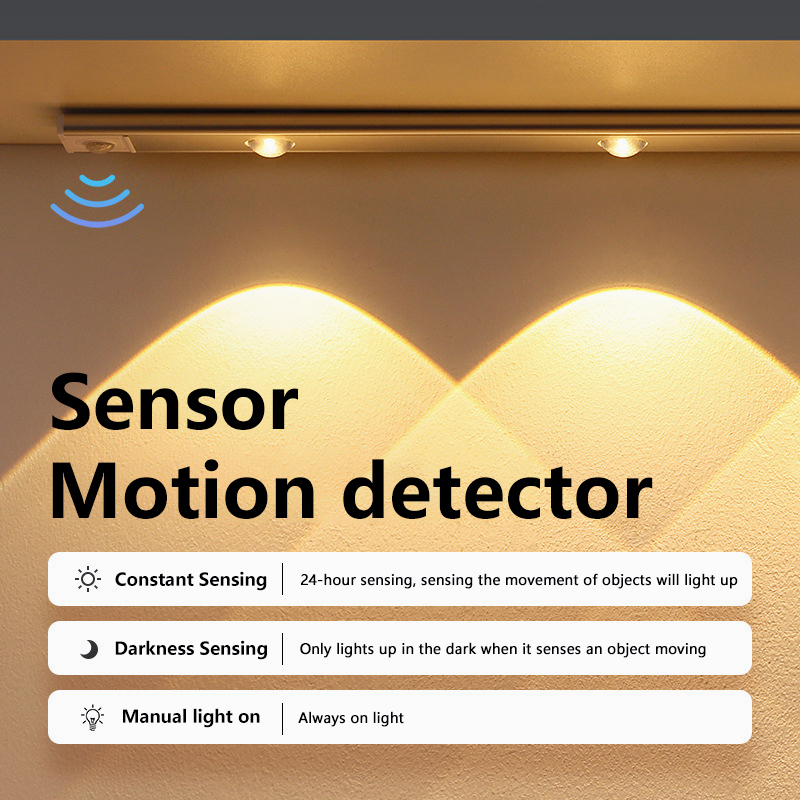3 Colors Motion Sensor Light for Bedroom Magnetic USB rechargeable lights Wirless Led Light Strip