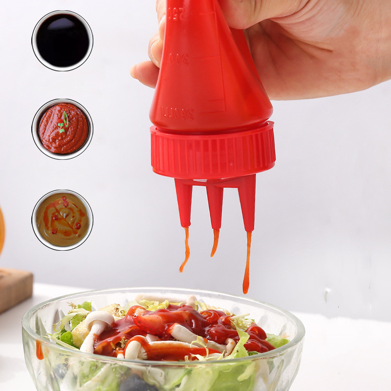 3 Holes Squeeze Bottle Plastic Condiment Squeeze Squirt Bottles Dispensing Bottles for Oil BBQ Sauce