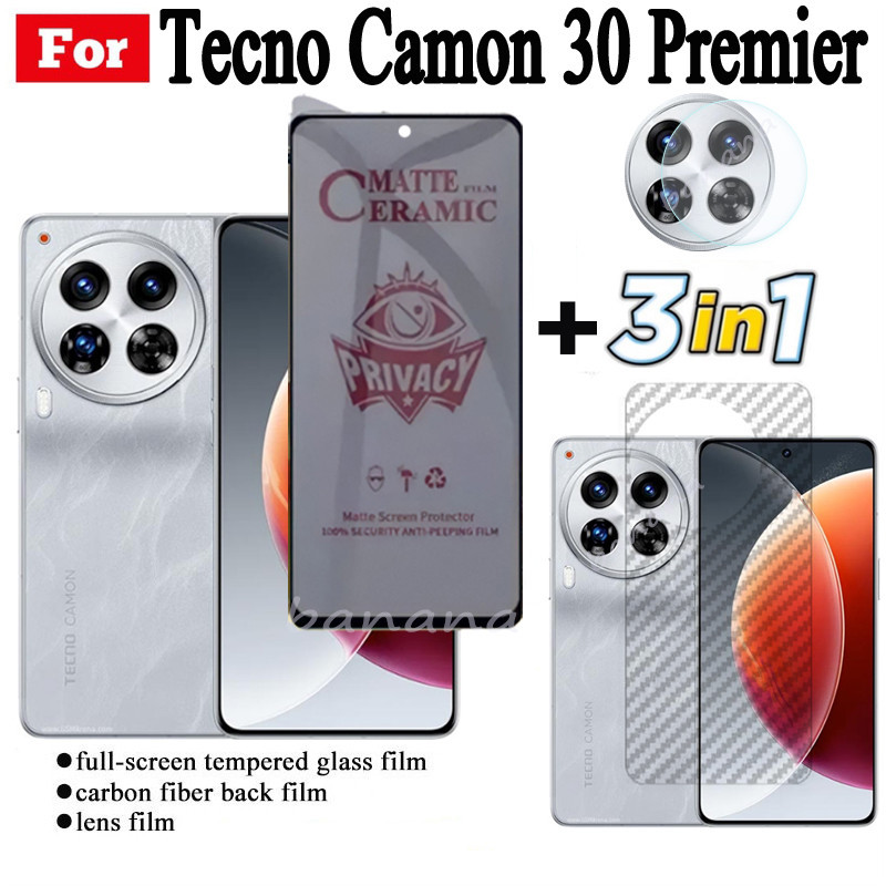 3 IN 1 Tecno Camon 30 Premier Anti-Spy Privacy Ceramic film For Tecno Camon 30 Pro 30 4G 5G Camera Lens Glass Screen Protector and Back film