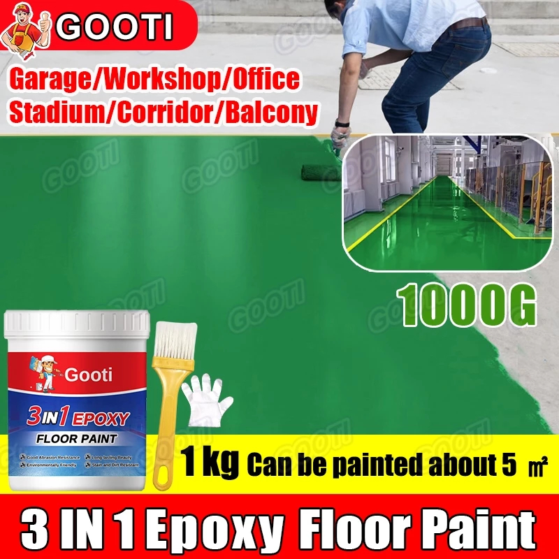 3 In 1 Epoxy Floor Paint 1000G With Brush Wear Resistant Waterproof Anti Slip Suitable for Outdoor Indoor Warehouse Workshop Garage Office Factory