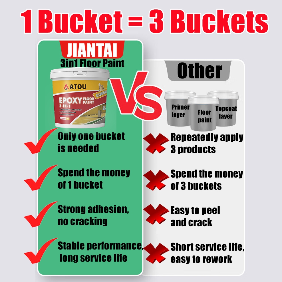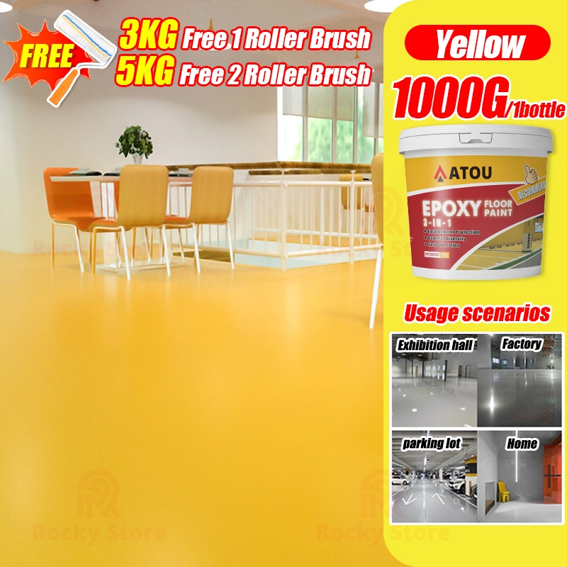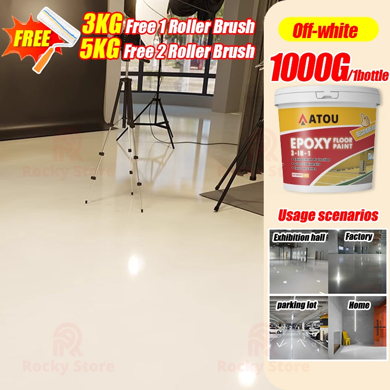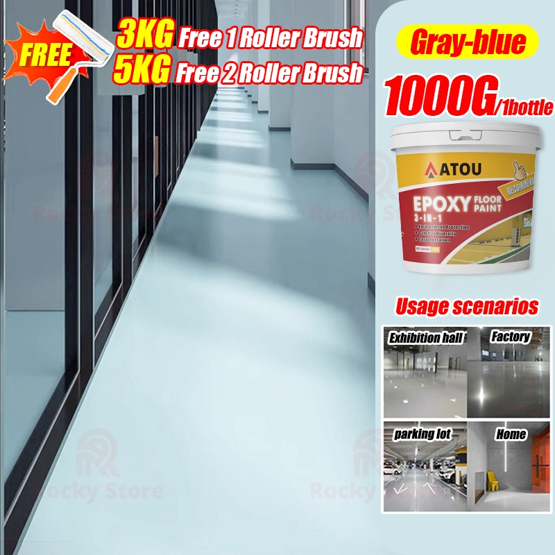 3 In 1 Epoxy Floor Paint 1000G With Roller brushes Wear Resistant Waterproof Anti Slip Suitable for Outdoor Indoor Warehouse Workshop Garage Office Factory
