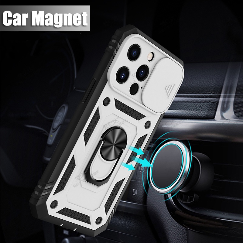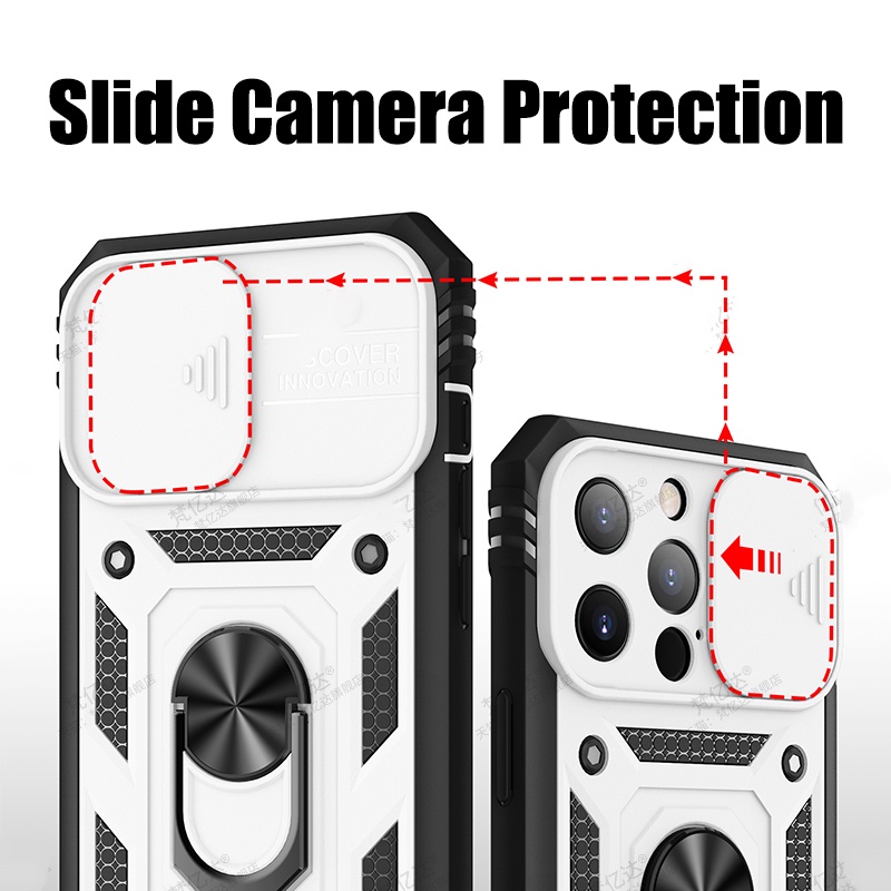 3 In 1 Thick Armor Shockproof Phone Case With Slide Camera Protection With Metal Stand Holder For iPhone 16 15 14 13 12 11 Pro Max XS XR X 8 7 Plus Anti-fall Phone Cover Casing