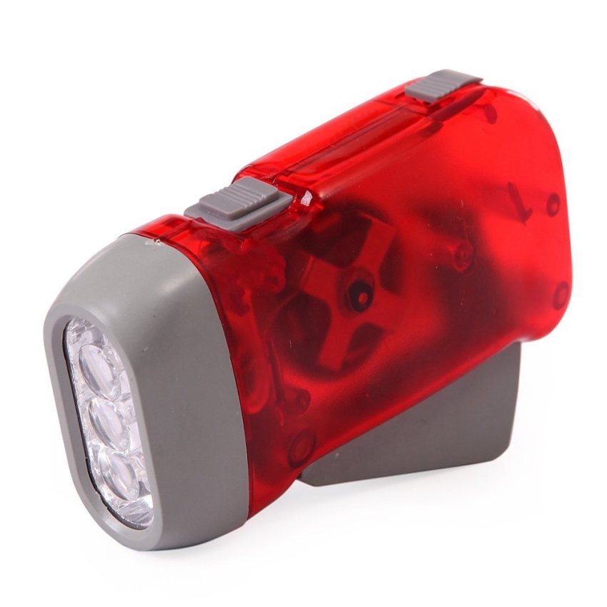 3-LED Hand Press Flashlight (Red) Hand Crank Battery-Free Flashlight Camping Lights 3 LEDs Hand Pres