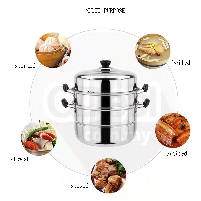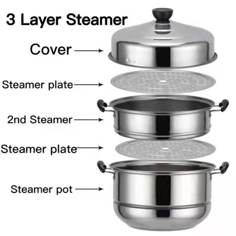 3 Layer Stainless Steamer (26cm) 3 Layer Steamer Siomai & Siopao Steamer Stainless Steel Cooking Pot