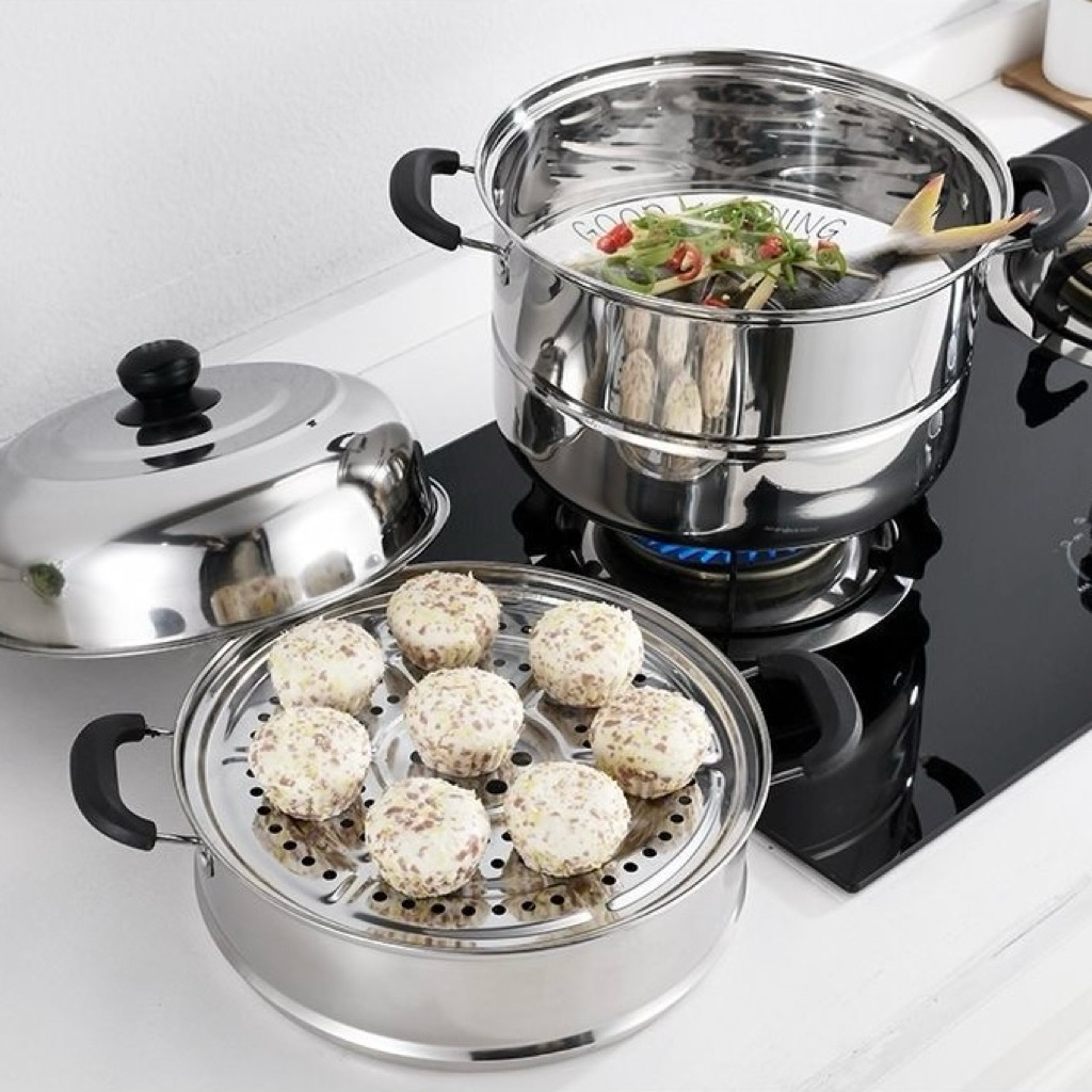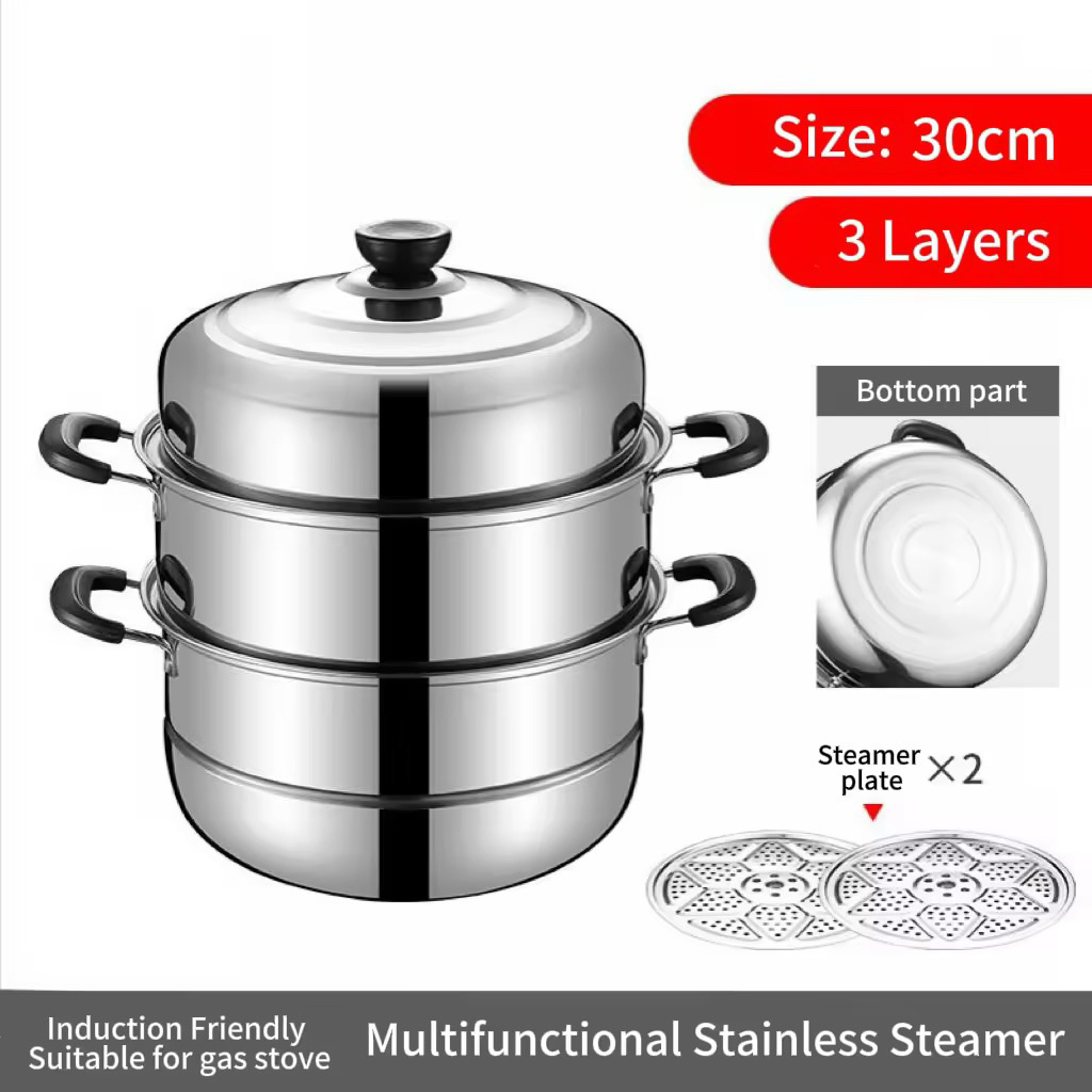 3 Layer Steamer 36cm/34cm/32cm Stainless Steel High Quality Big Cooking Pots Cookware Steam Cook Pot
