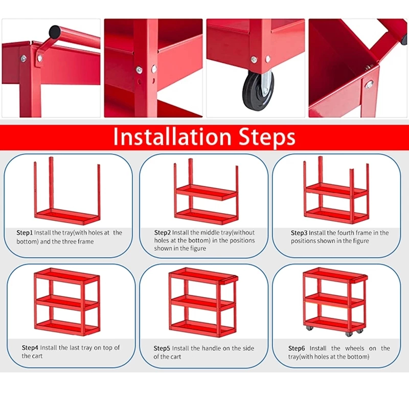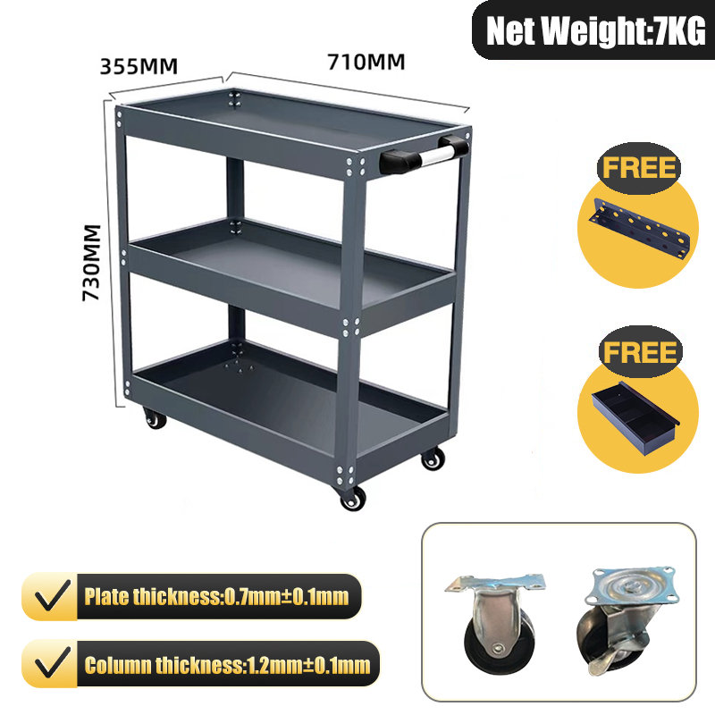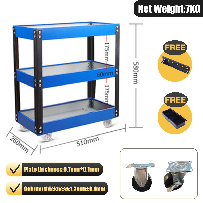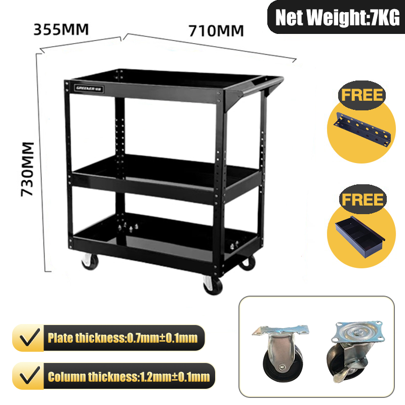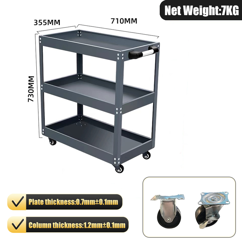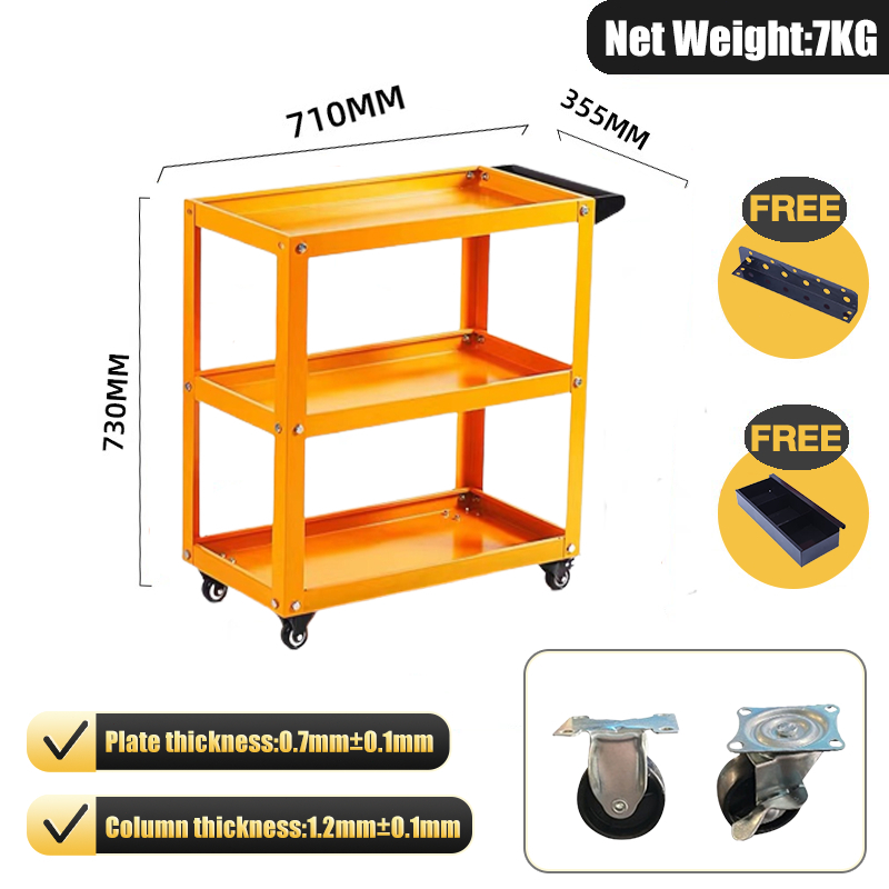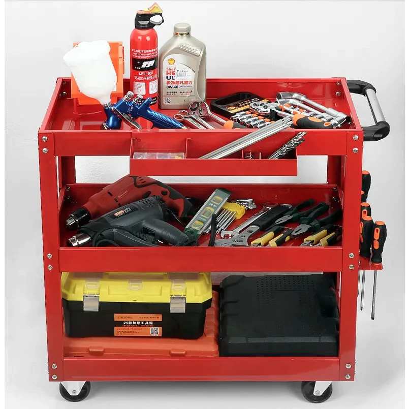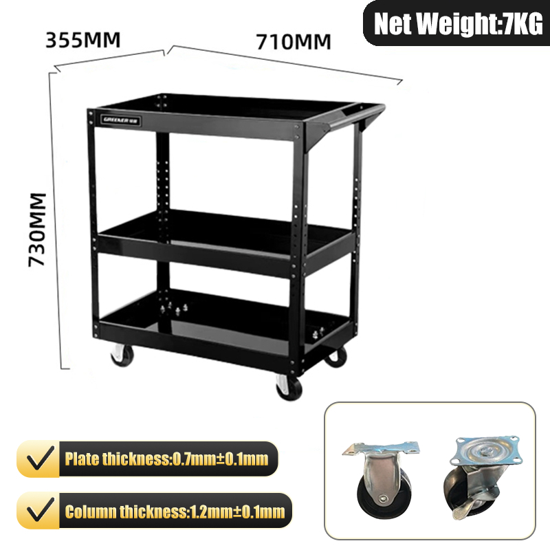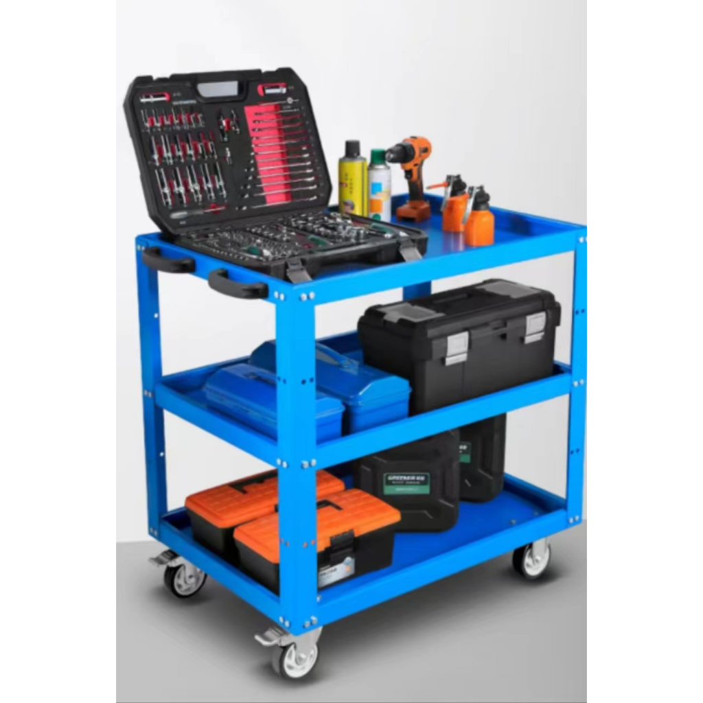 3 Layer Trolley Hand Push Tool Cart Heavy Machinery Workshop Maintenance Pulley Multi functional
