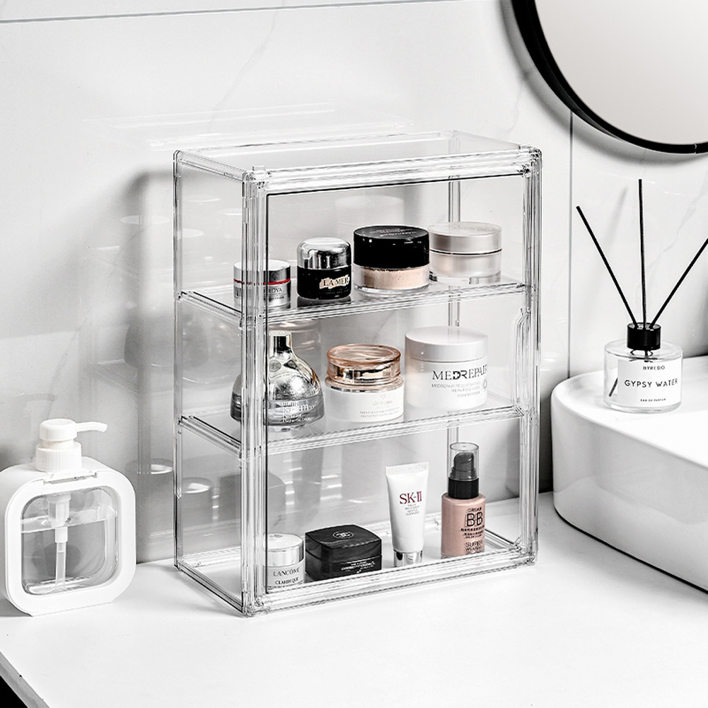 3 Layers Acrylic Display Case Wall Hanging Storage Organize Display Case Transparent Boxes Magnetic Dustproof Cup Storage Rack