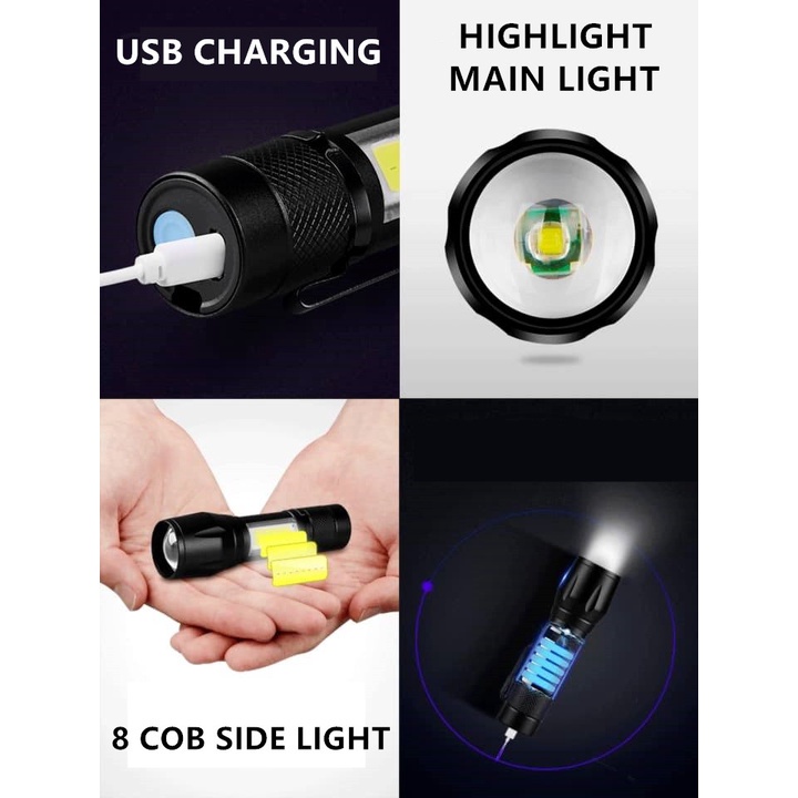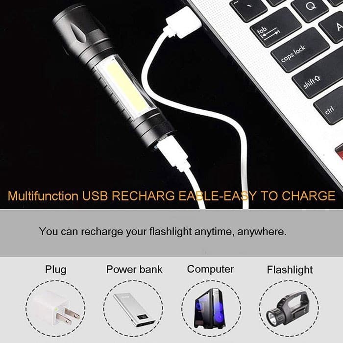 3 Mode Rechargeable Waterproof LED Torch Light XPE COB USB Charge Bright Zoomable Flashlight