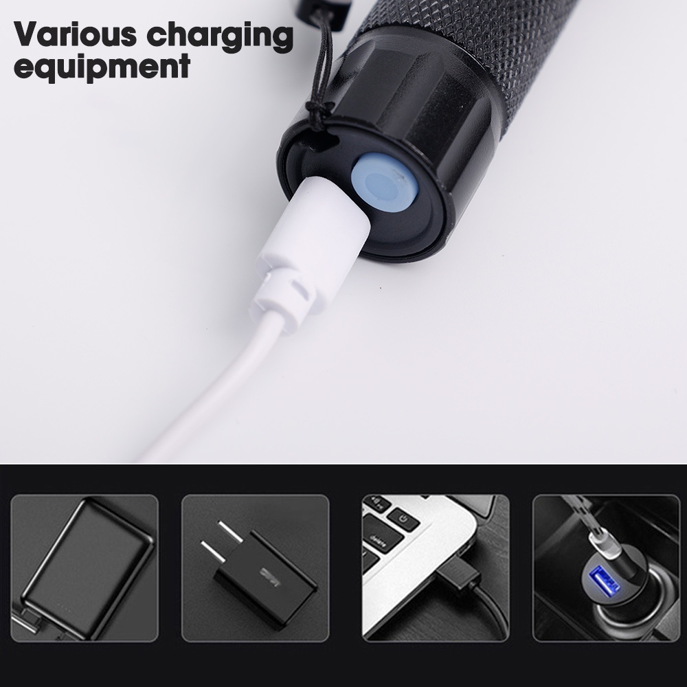 3 Modes Usb Charging Long-range Mini Portable Powerful Flashlight / Household Waterproof Strong Light Durable Flash Light / Outdoor Zoomable Torch For Hiking, Camping, Emergency