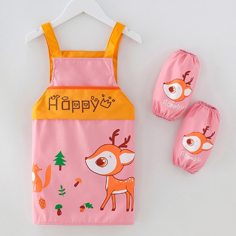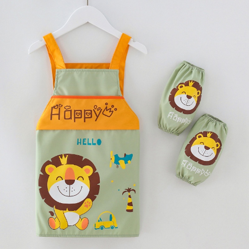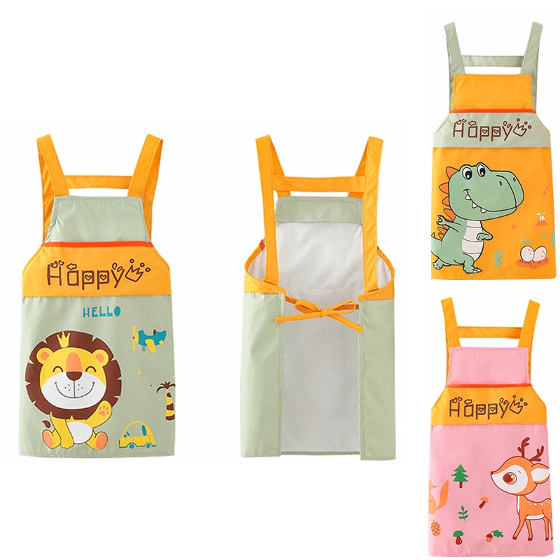 3 PCS Cartoon Apron For Kids Children's Painting Cooking Waterproof Apron With Pocket (2-15 years)