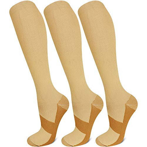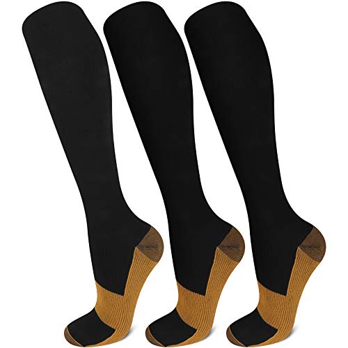3 Pairs Copper Compression Socks Anti-Fatigue Pain Relief Compression Socks Black Travel Stocking Help Blood Circulation Support Knee